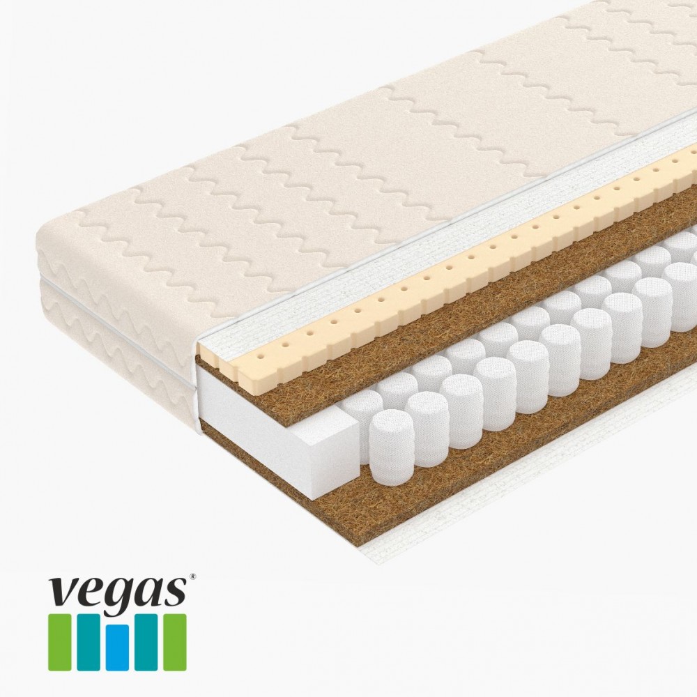 Высокий матрац на основе независимых пружин с добавление латекса и кокоса.