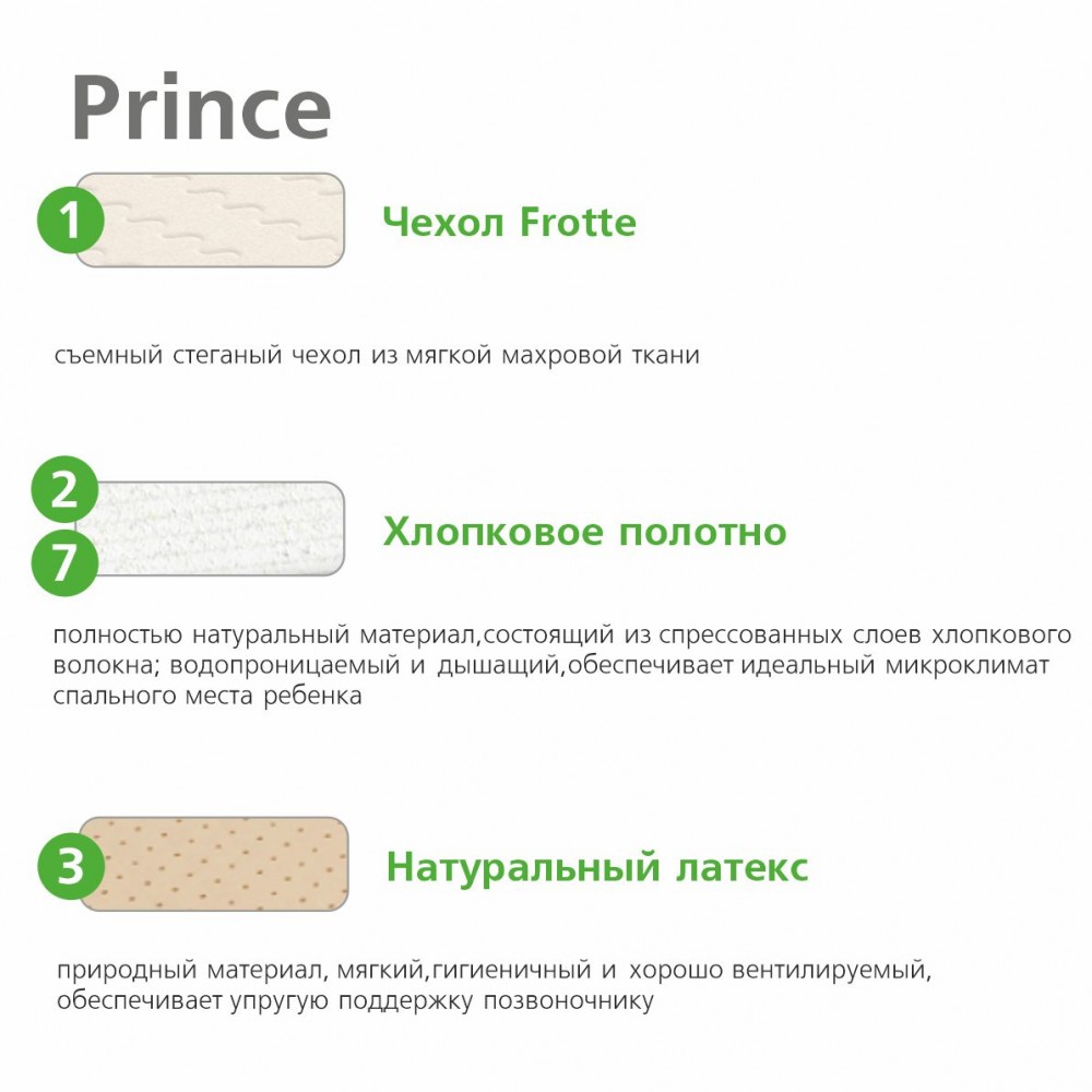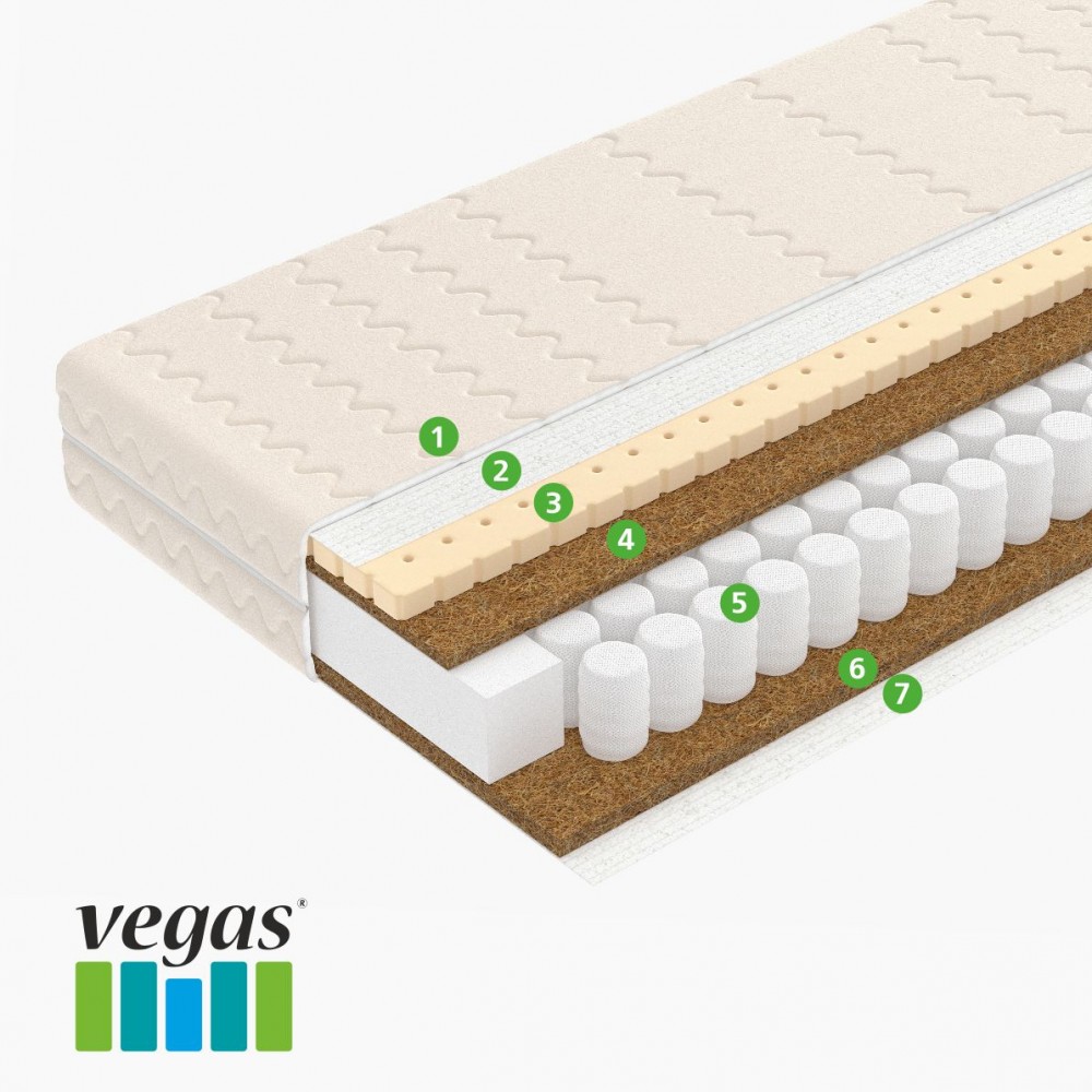 3) Натуральный латекс - природный материал, мягкий, гигиеничный и хорошо вентилируемый, обеспечивает упругую поддержку позвоночнику