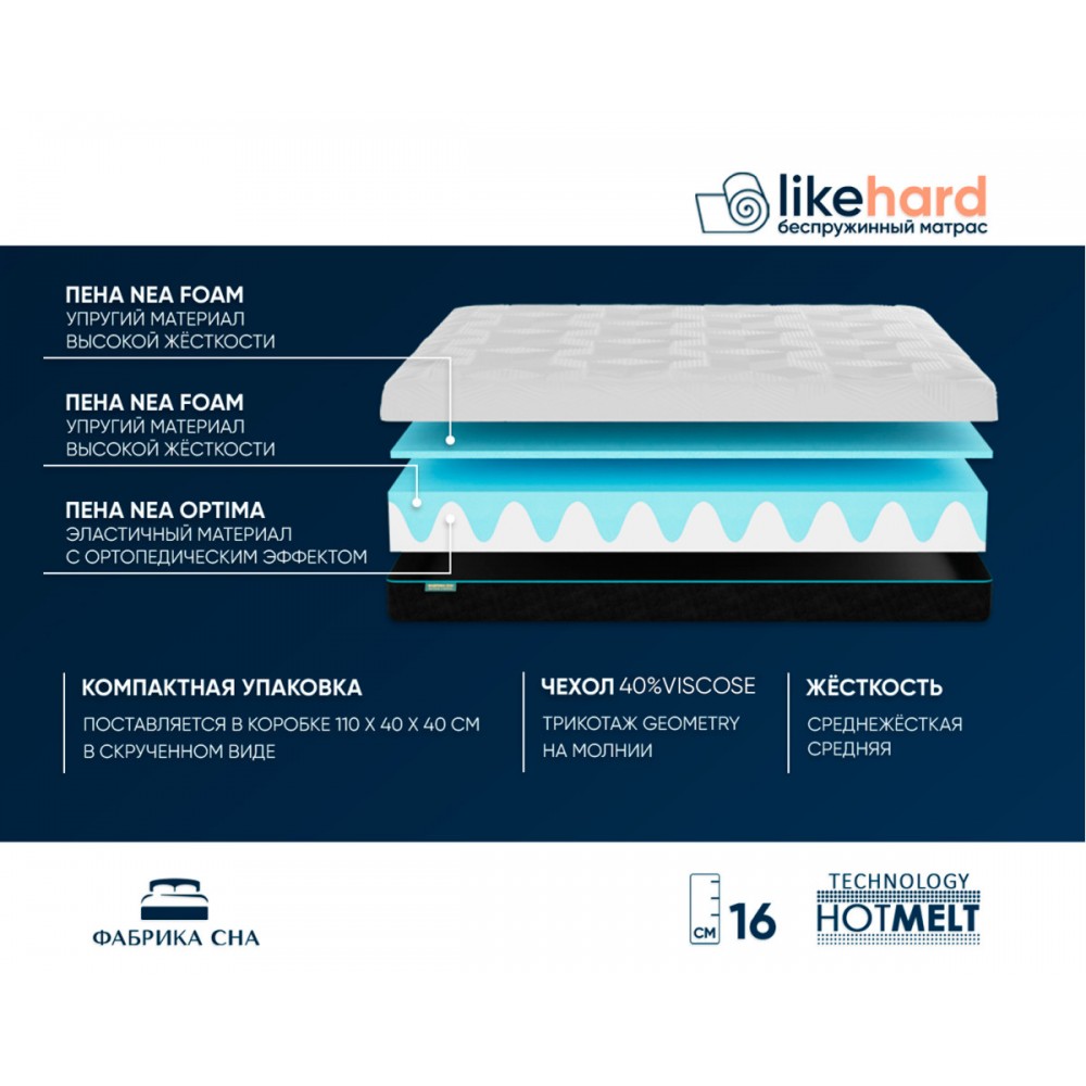 Матрас Like One - это невысокий беспружинный матрас средней жесткости.