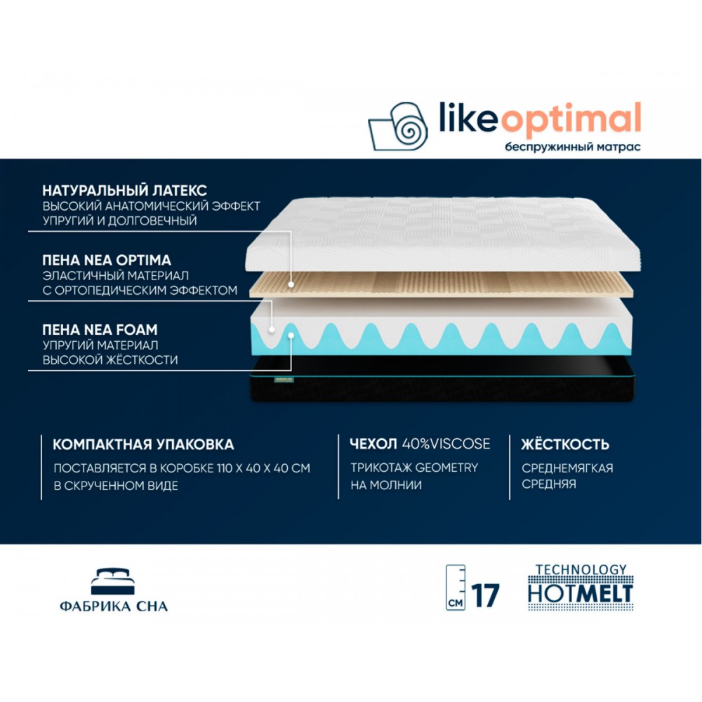 Матрас Like Optimal - это беспружинный матрас с натуральным массажным латексом.